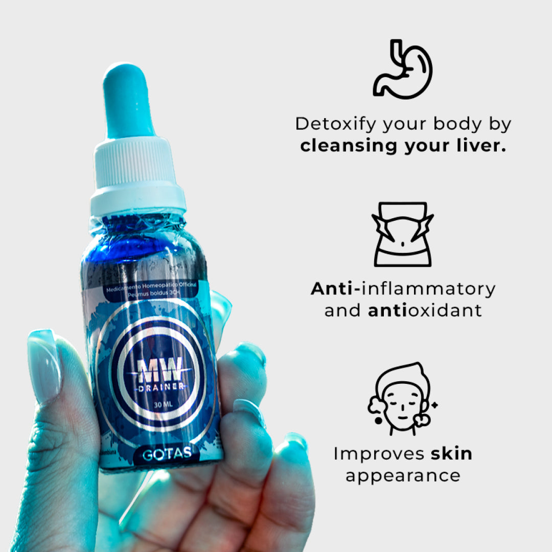 Achieve optimal wellness and eliminate accumulated toxins with MW Drainer. Our exclusive formula is carefully crafted to offer you a comprehensive solution for detoxification, skin improvement, and stimulation of renal function.