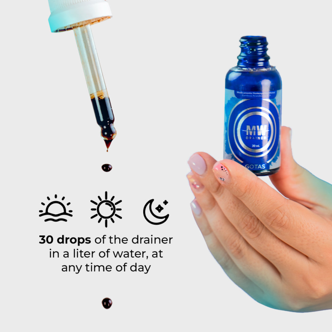 To enjoy the benefits of MW Drainer, simply dilute 30 drops in 1 liter of water and consume it throughout the day. This consumption method is easy to incorporate into your daily routine and will help you maintain optimal internal balance.